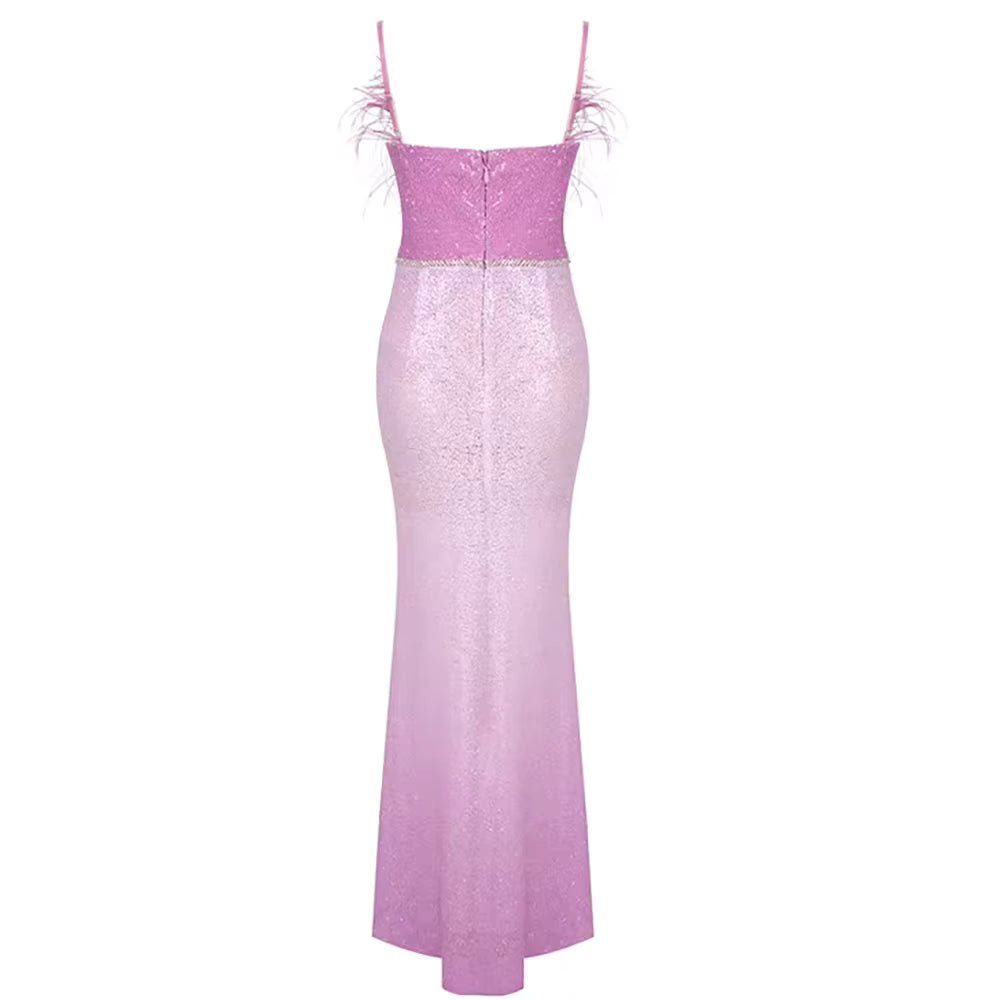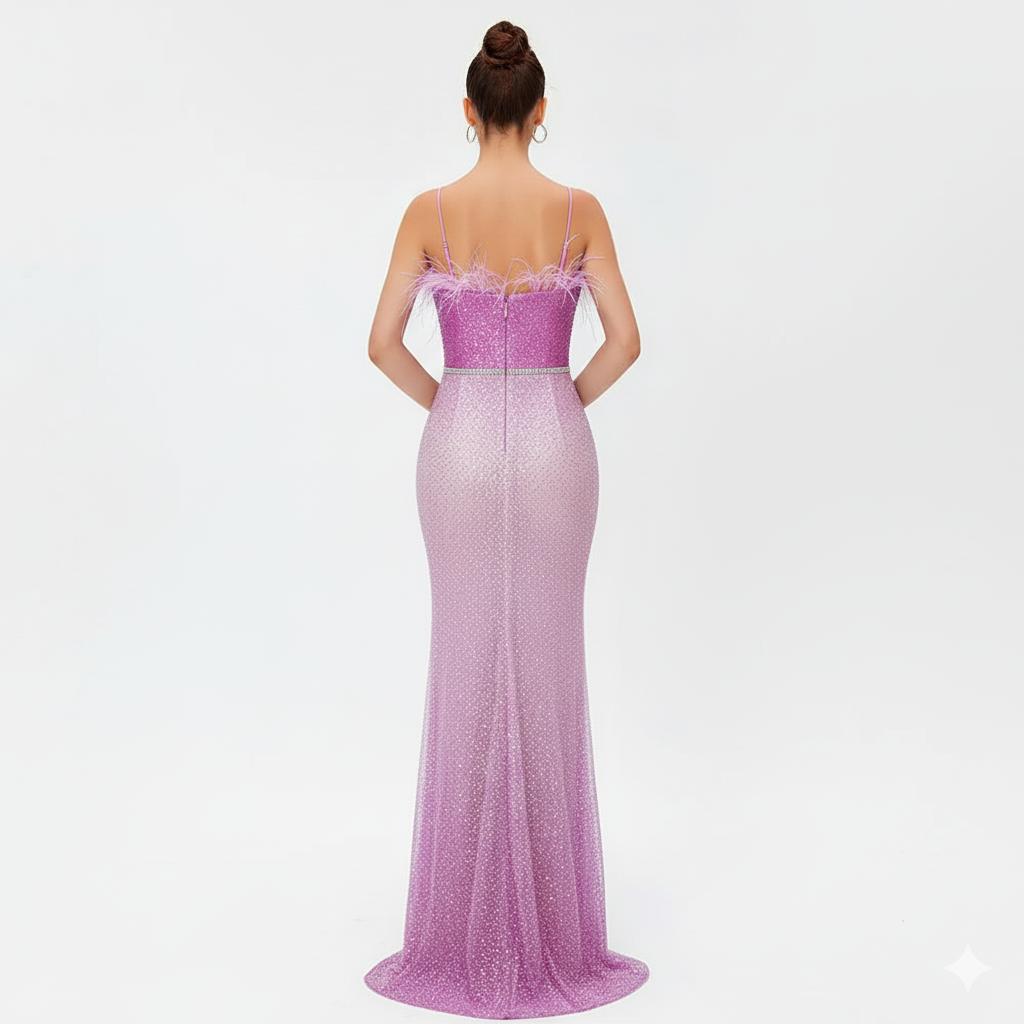 • Formal Party Dresses for Women Luxury Feathers Patchwork Mesh Sparkling Sequins Prom Maxi Long Gowns Formal Occasion Dresses Winteres