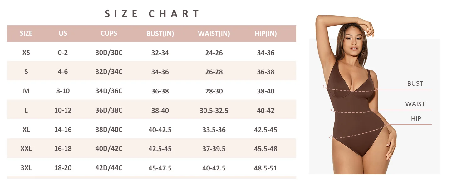 | Size | Bust (inches) | Waist (inches) | Hips (inches) |