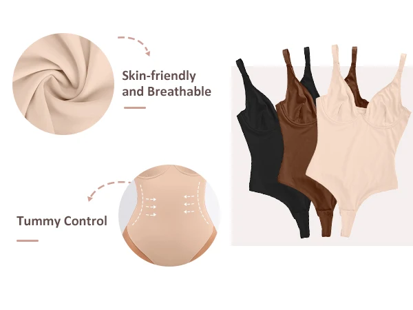 - Seamless V Neck Tummy Control Bodysuit Sculpting