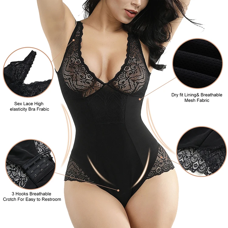 - Queen Black Mesh & Lace Bodysuit – One-Piece Shapewear