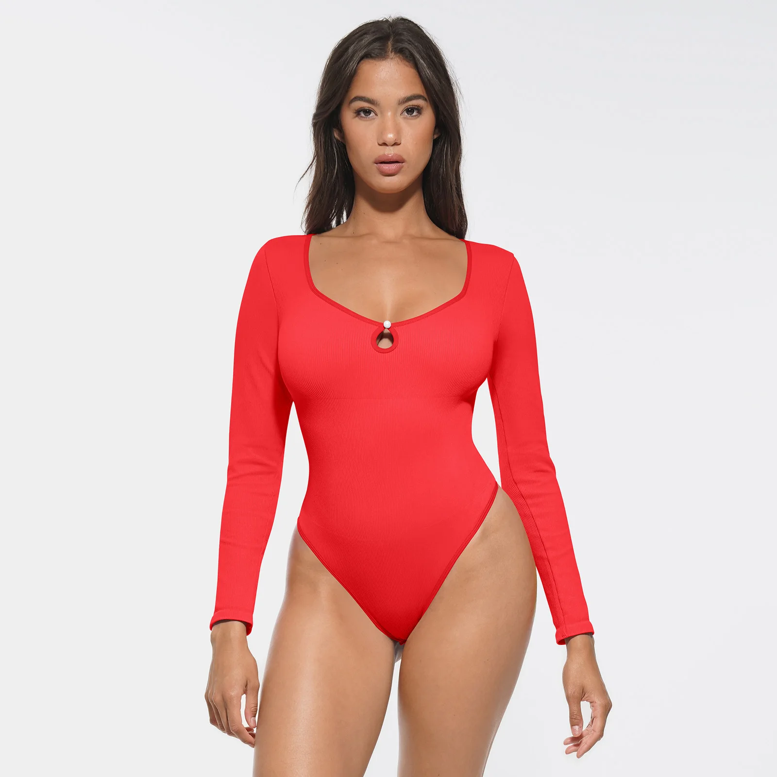 Seamless V-Neck Shapewear Bodysuit – Tummy & Hip Control