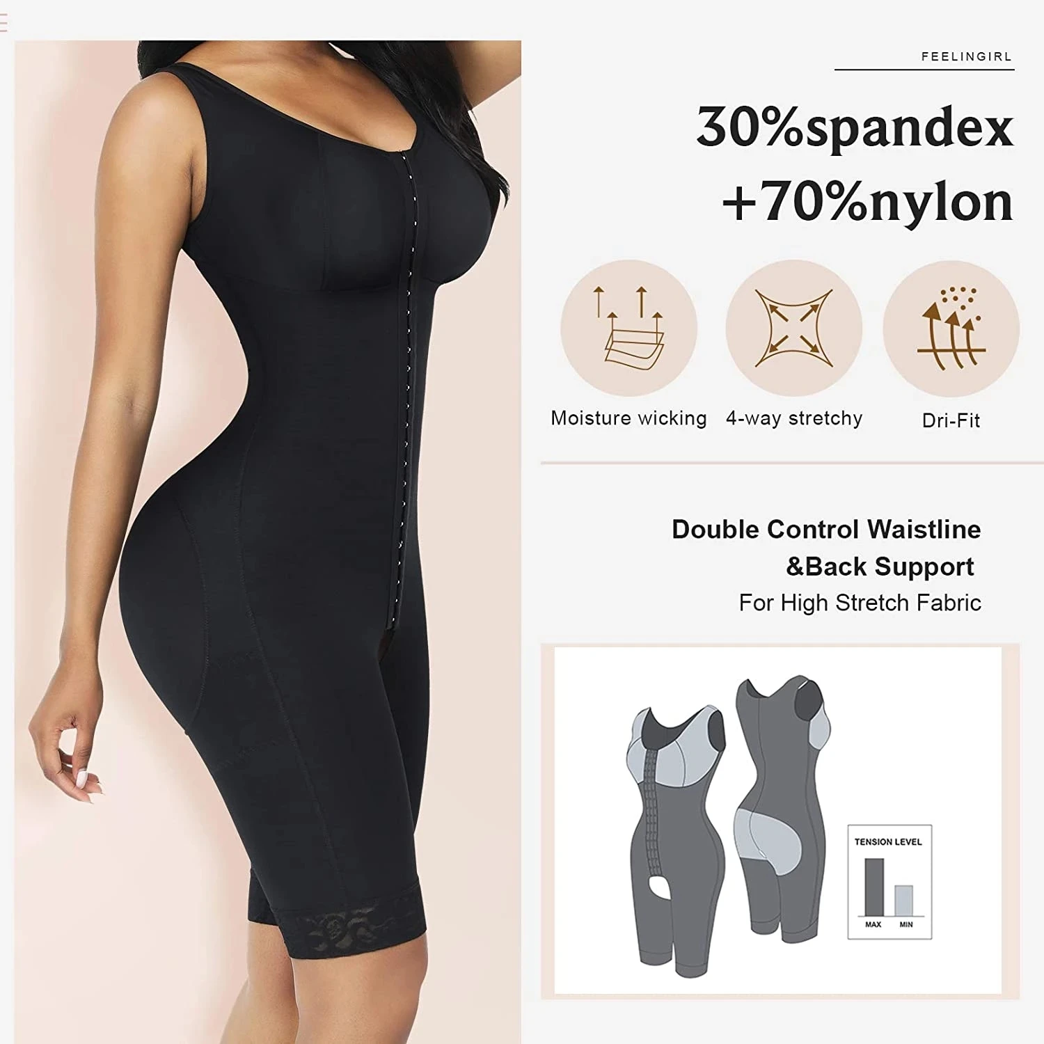 - Side Open Crotch Black Lace Body Shaper – Tummy Control Bodysuit