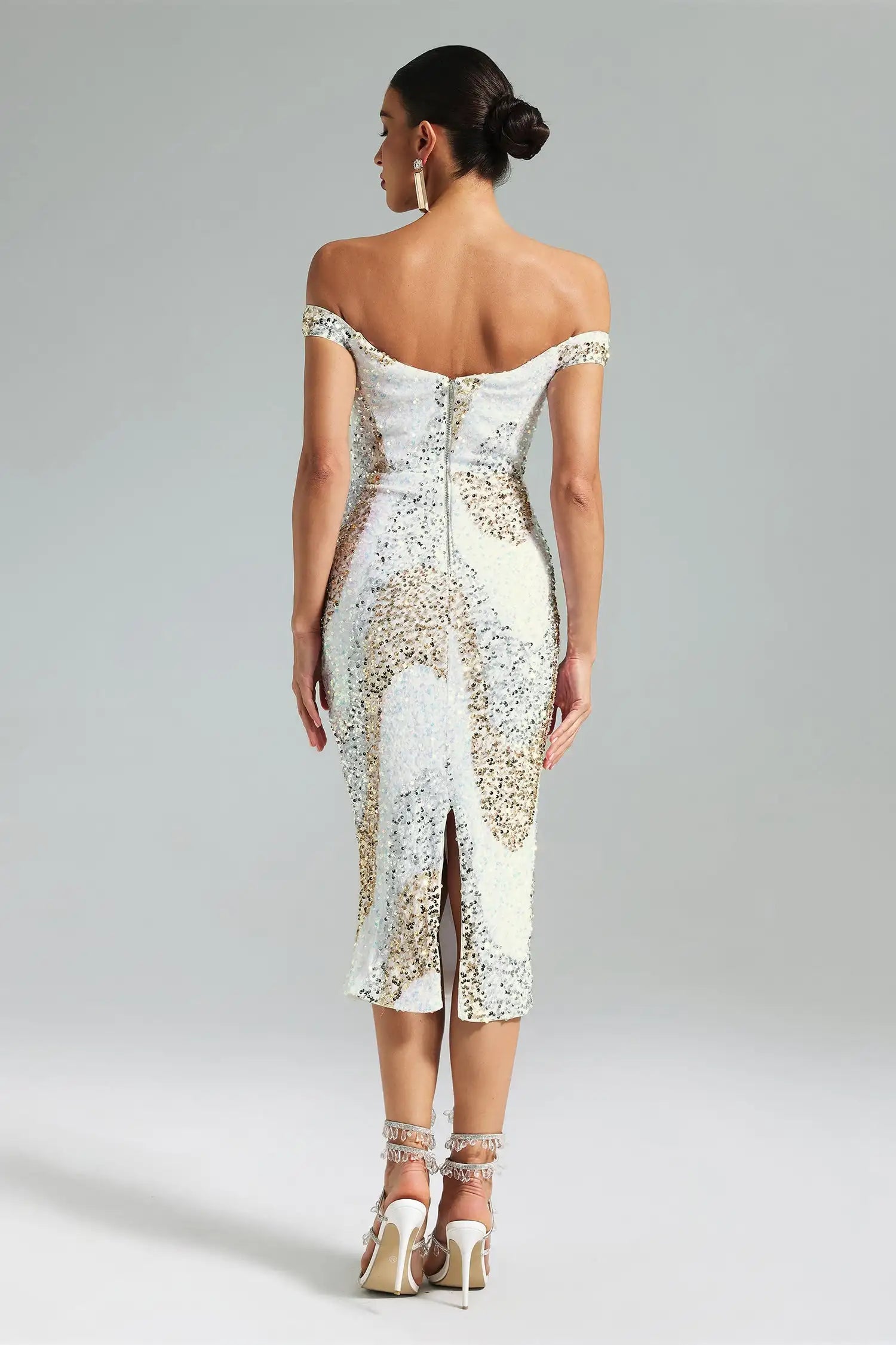 Shine bright in the Jellay Sequins One Shoulder Midi Dress. This eye-catching design features sparkling sequins and a stylish one-shoulder cut, perfect for making a statement at any event.