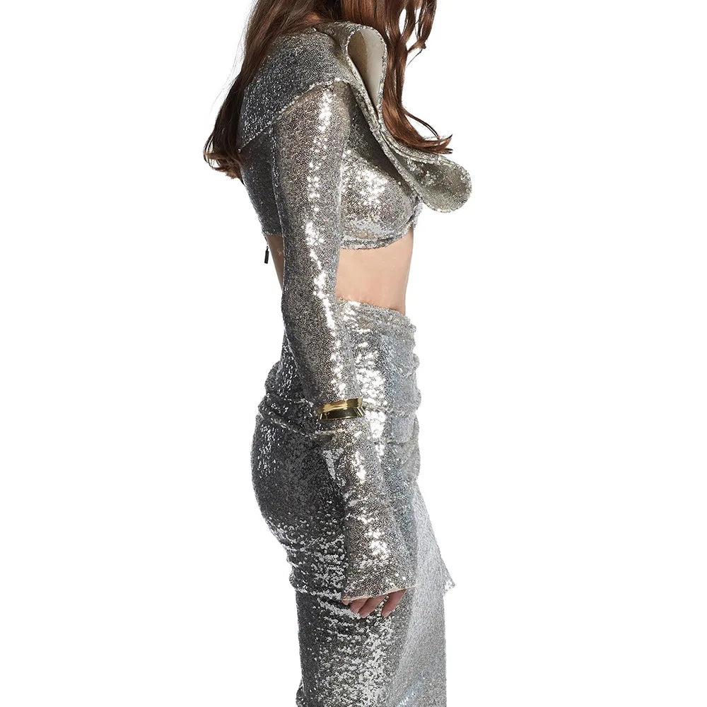 • Bella Barnett High Quality Off Shoulder Slit Strapless Party Cocktail Sequin Midi Dresses Women Lady Elegant Winteres