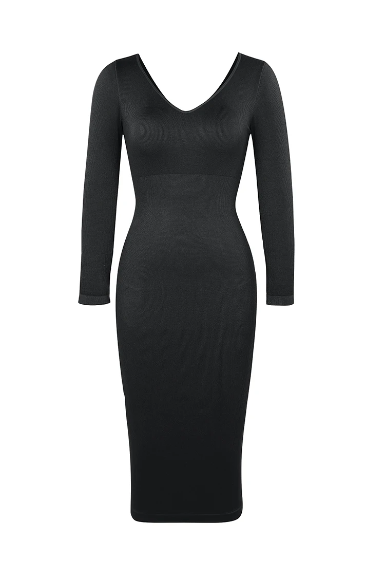 - Long Sleeve Bodycon Shapewear Dress – Casual Slimming Wear