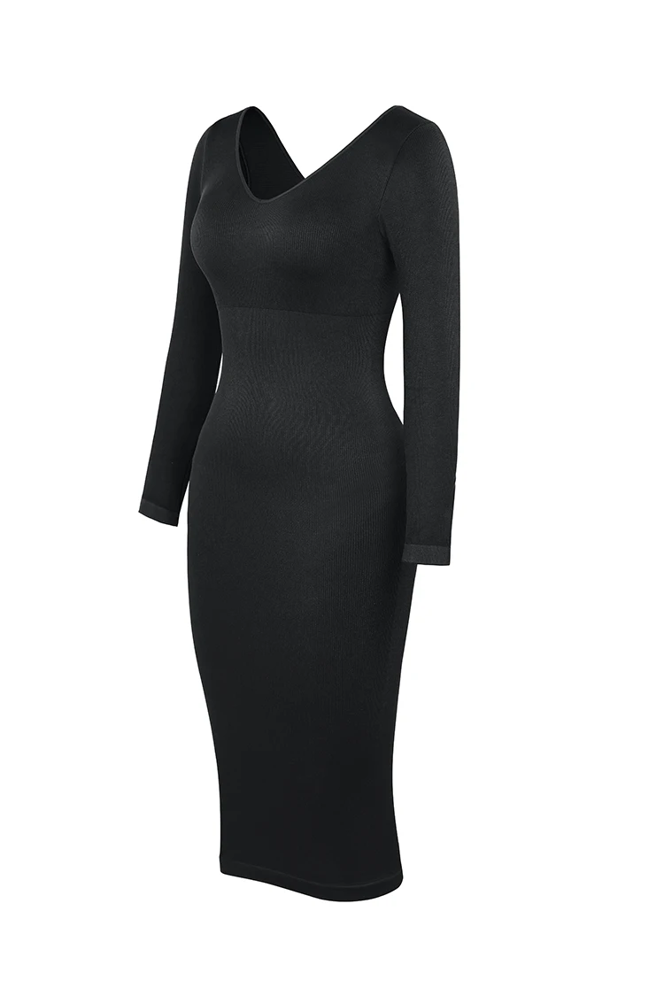 Long Sleeve Bodycon Shapewear Dress – Casual Slimming Wear