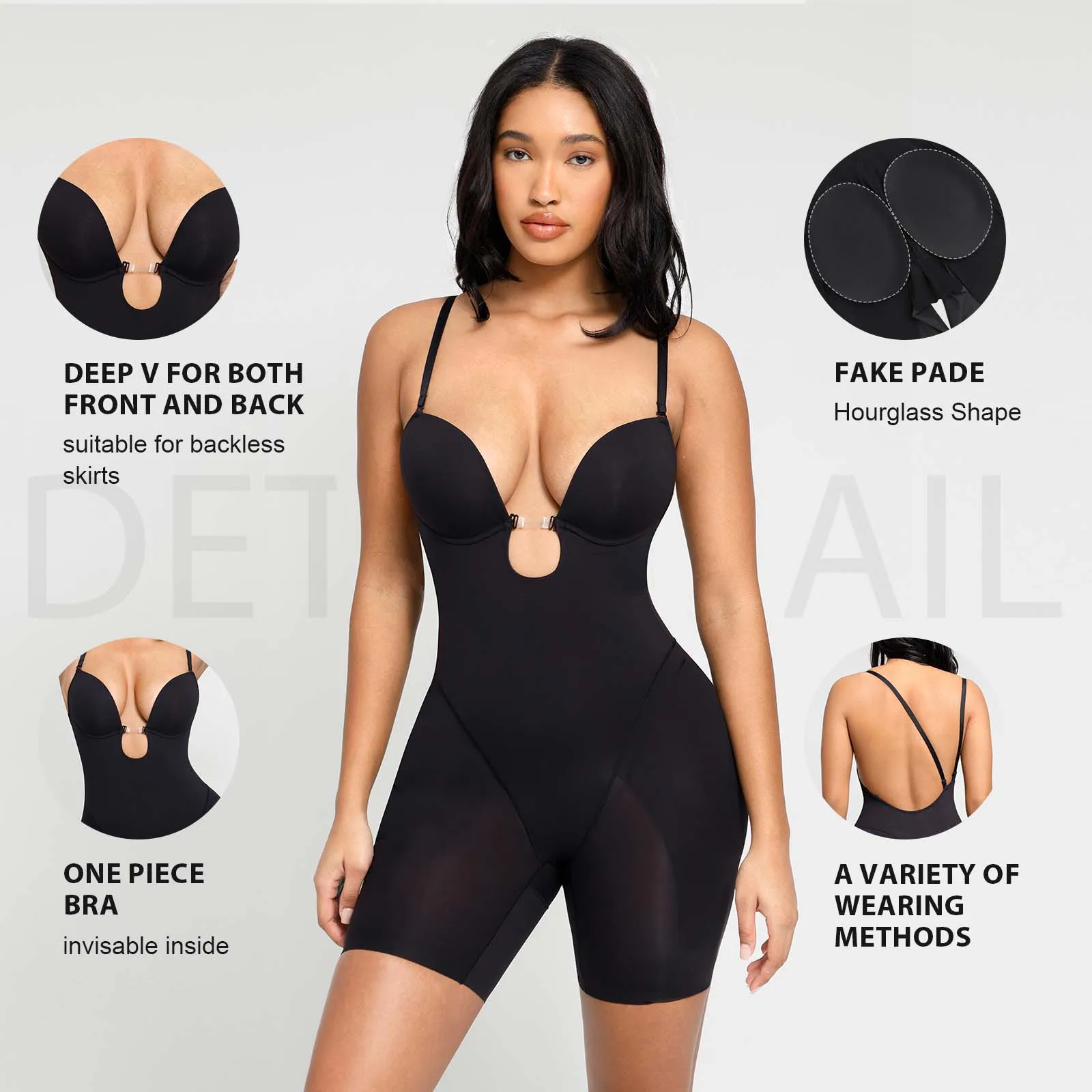 - Seamless Backless Push-Up Bodysuit – Slimming Corset with Concealed Bra