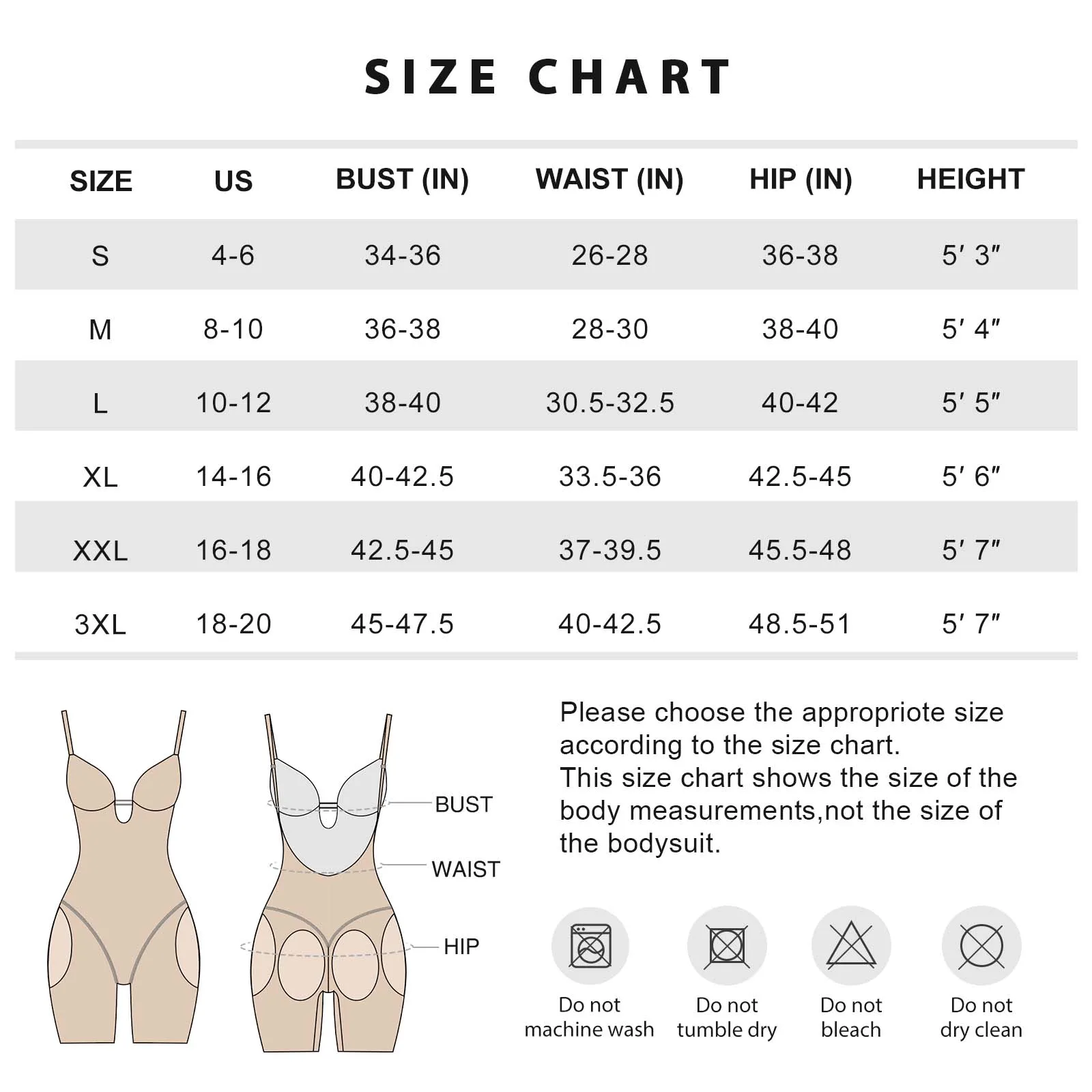 | Size | Bust (inches) | Waist (inches) | Hips (inches) |