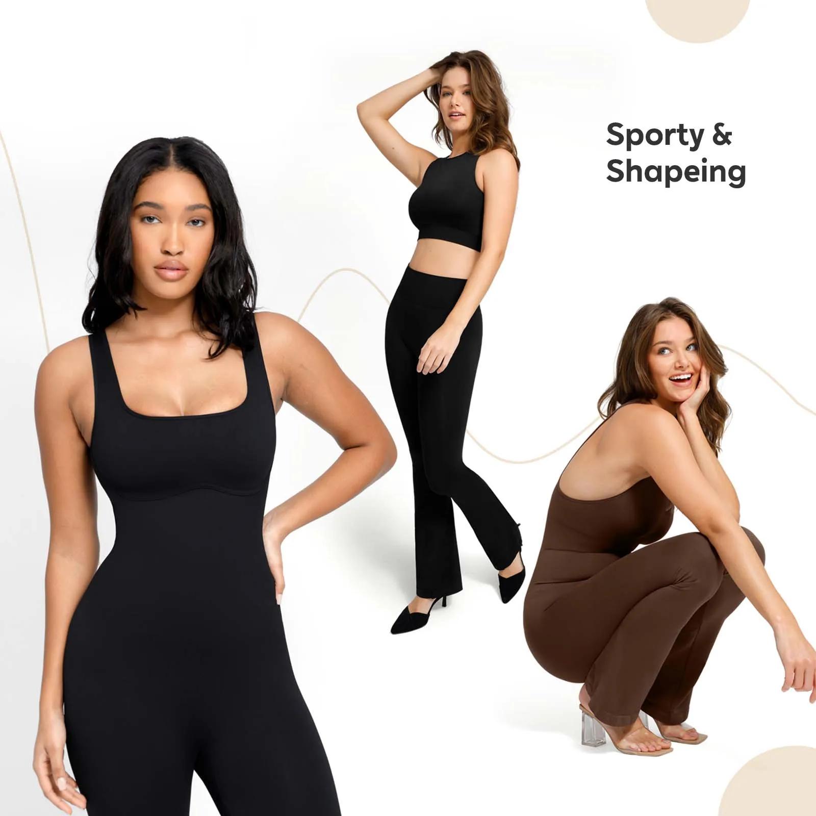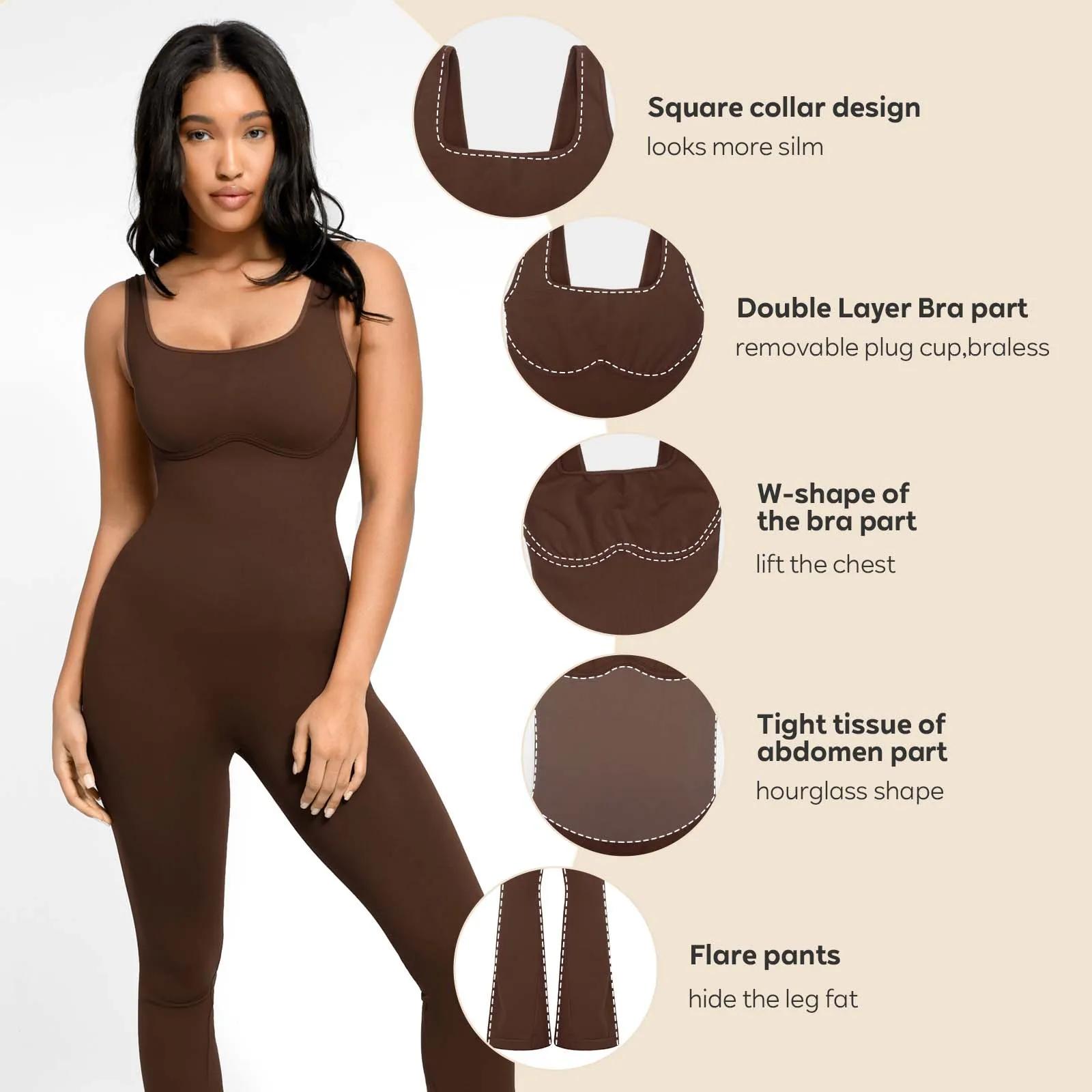 - Seamless Square Neck U-Back Flared Jumpsuit
