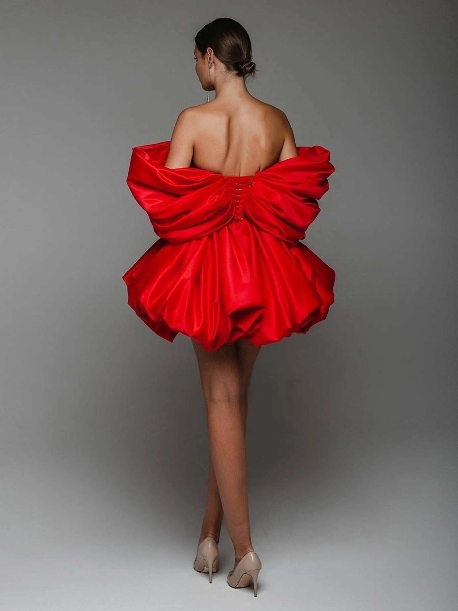 • 2025 New Fashion Sexy Strapless Slim Party Dress Puffed Hem Sequin Stitched Red Short Evening Dress Winteres