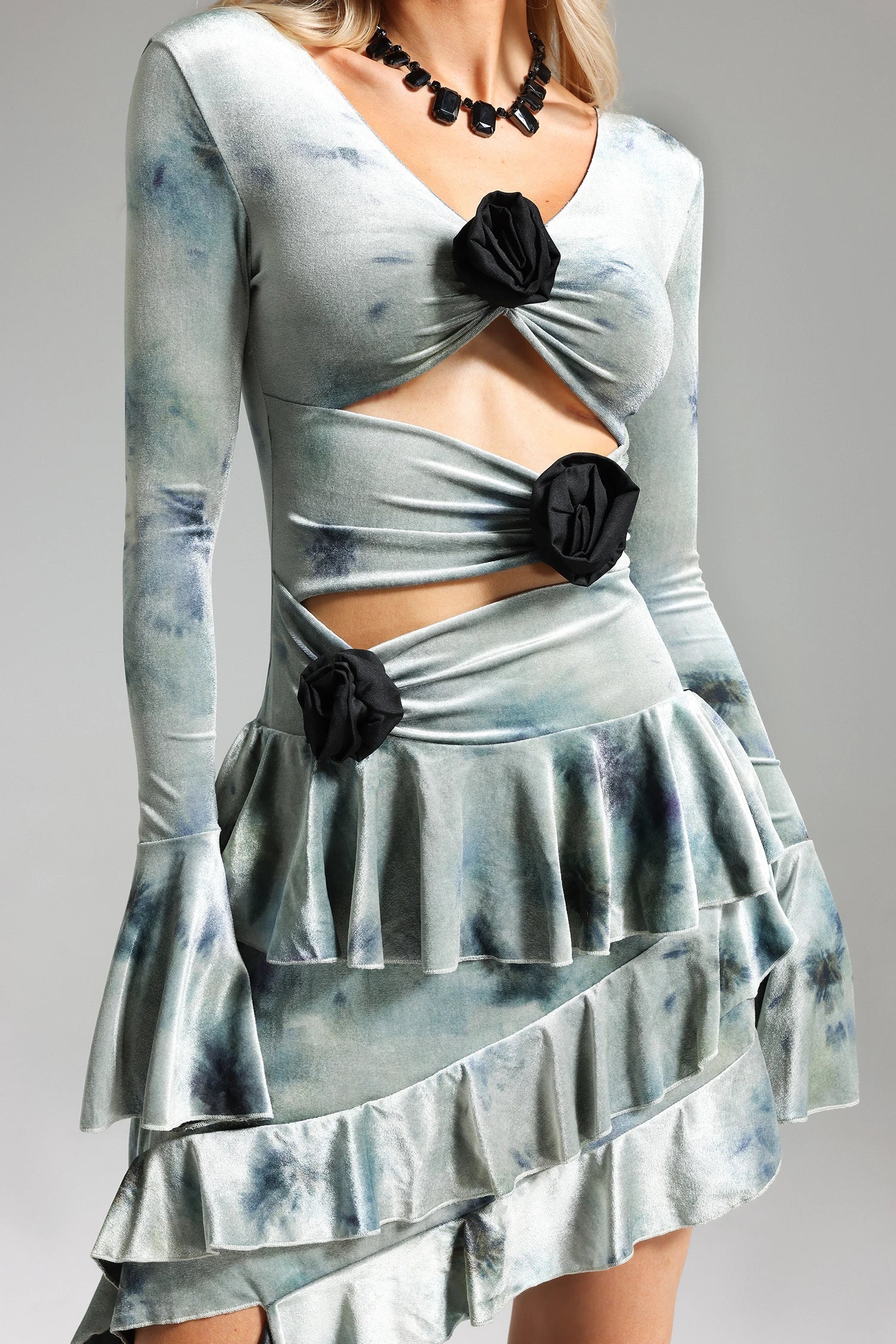 La robe à volants tie-dye à fleurs Kimivi allie sexy et élégance avec une coupe moulante et des volants ludiques, parfaite pour les cocktails, les clubs ou les soirées.