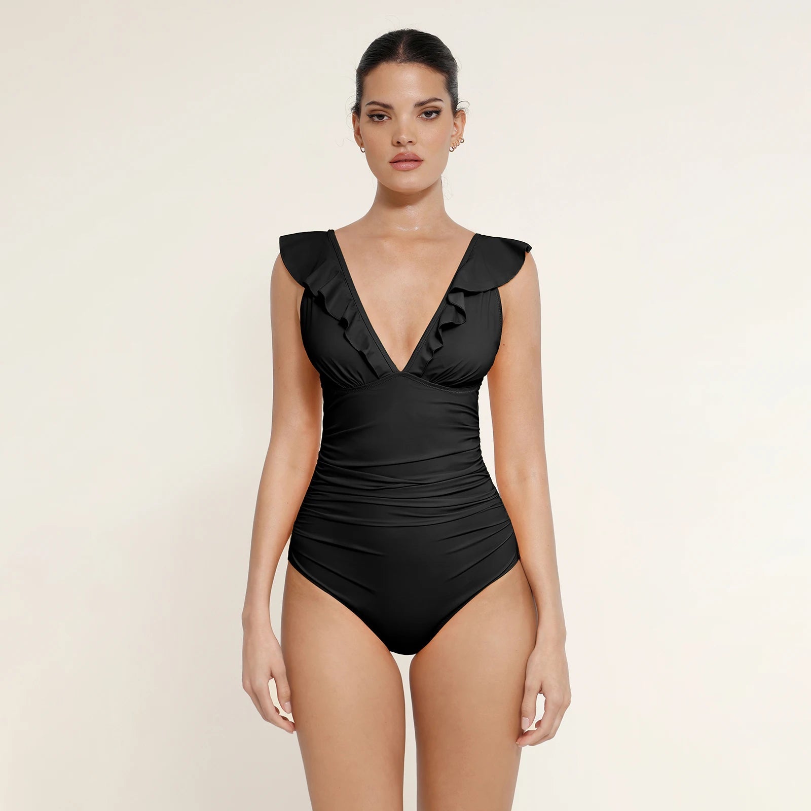• Maillot de bain bikini à lacets avec volants sur les épaules, effet gainant