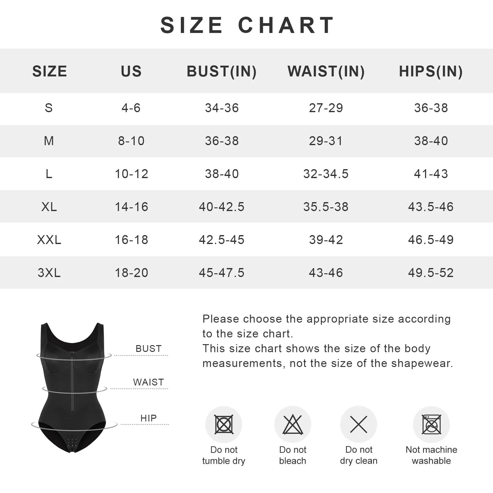 | Size | Bust (inches) | Waist (inches) | Hips (inches) |