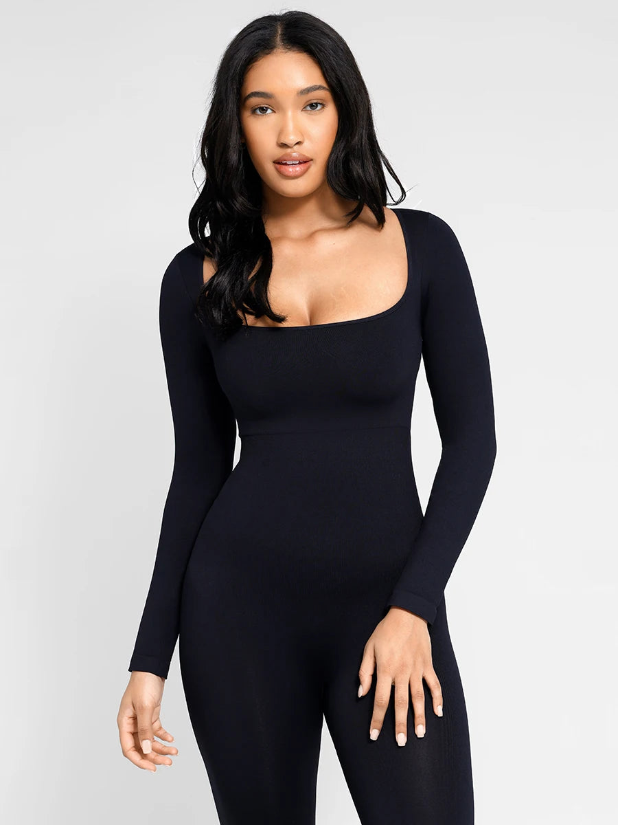 • Seamless one-piece flared shapewear jumpsuit with inverted T-shaped shoulders Winteres