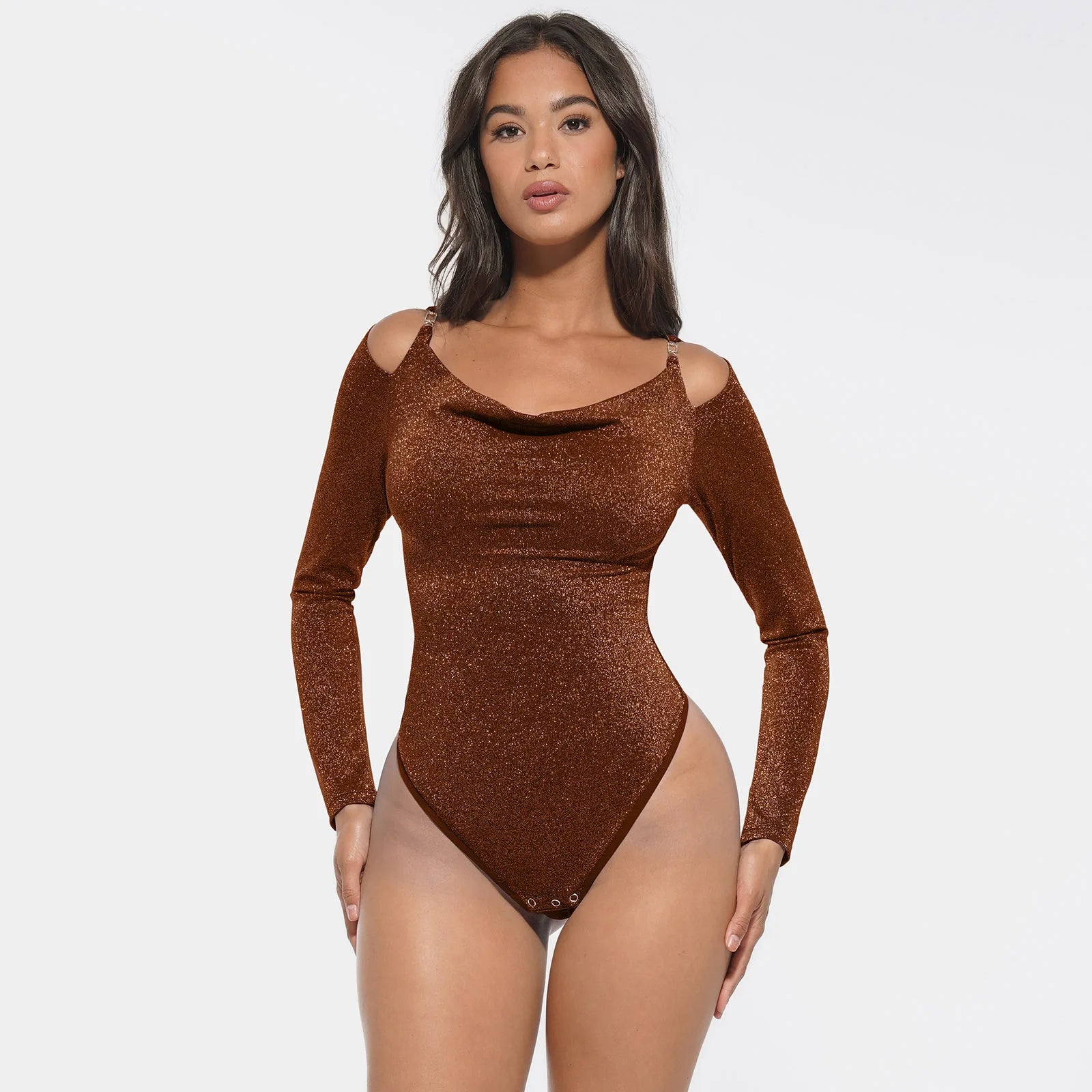 - Shaping Bodysuit Shiny Effect, Built-in Bra & Thong